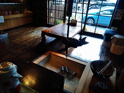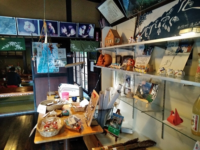 ![]() 囲炉裏を囲んだスペースにはお土産品 |