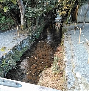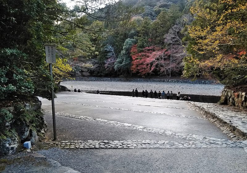 ![]() 五十鈴川の御手洗場 右端の石畳は徳川綱吉の生母桂昌院けいしょういんが寄進した |