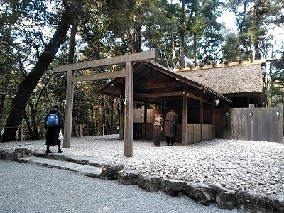 ![]() 正殿 伊勢神宮は「唯一神明造」で天照大神あまててらすおおみかみを祀る |