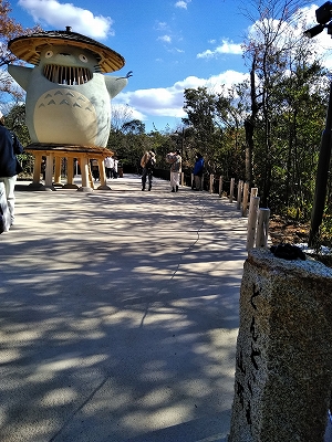![]() 集合時間を間違えたので先に山頂へ! 階段かケーブルカー?で登とトトロがお出迎え! |