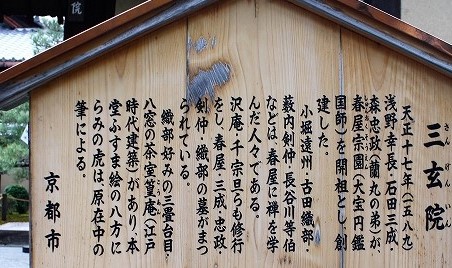 中央の細長い竿石関ヶ原の戦いで敗れた石田三成は、慶長5年(1600年)10月1日に六条河原で処刑されたことはよく知られています。 処刑後、石田三成の首は三条河原にさらされました。 三玄院の開祖であり、石田三成と生前親交の厚かった春屋宗園が遺体を引き取り、三玄院に墓を建てて葬ったと伝えられています。 |
