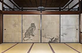 ![]() 枯山水庭園「昨雲庭」 434年前の景色を体感! 右)八方睨みの虎 |