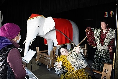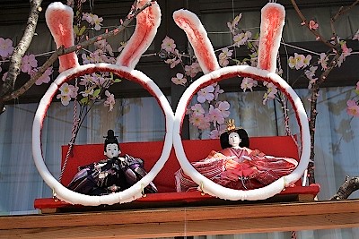 ![]() ![]() 竹の骨組みに紙を張り合わせ作る等身大の竹細工はひな人形より見どころがあります |
