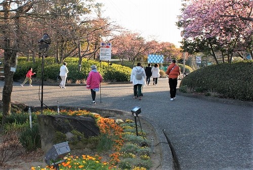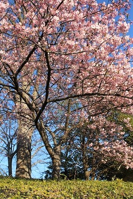 ![]() 入り口の一番咲いている河津桜を見て・・・ |