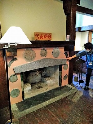 ![]() 板張りロビーにも手斧痕のデザインと床暖房まで |