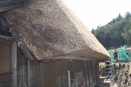 ![]() 拭き替えたばかり茅葺屋根が美しい! 家主さんが後世に日本文化を継承してくれる人たちに拭き替えたとのこと |