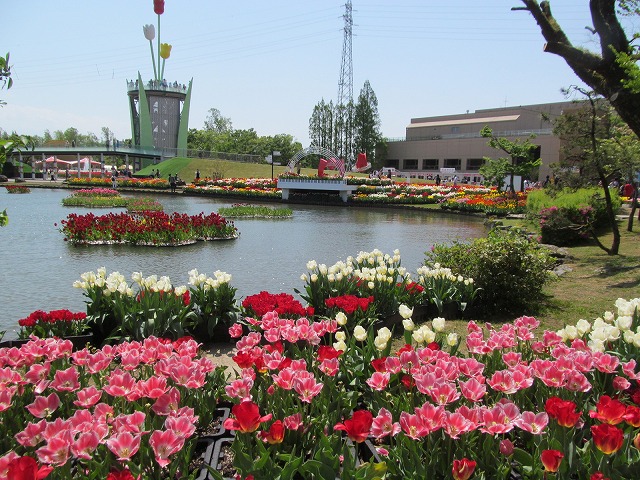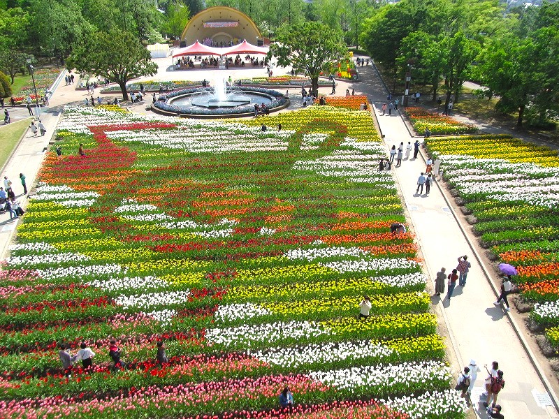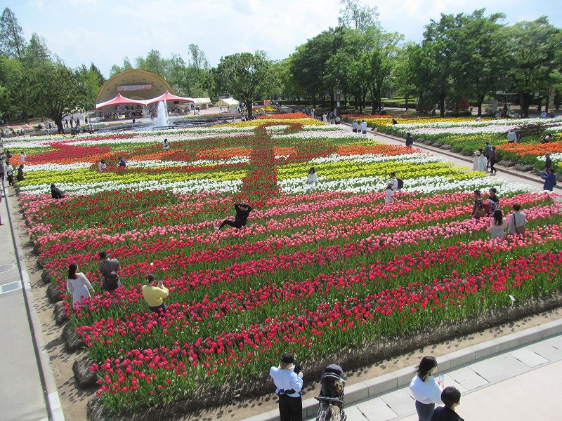 ![]() 砺波チューリップフェア(60段登った展望台より) |