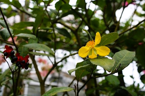 ![]() ツバキに似た小ぶりな花ヒメシャラが目に入った。 今回目的のハナショウブを見に温室へ直行 |