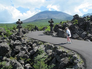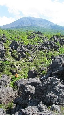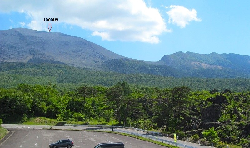 1000t岩と同じ大きさ ![]() 浅間山 2568m 右の山は顔のように見える黒斑山くろふやま2405m |