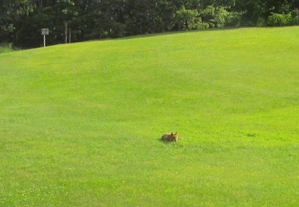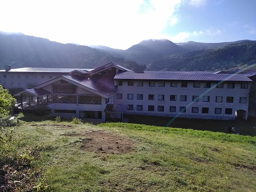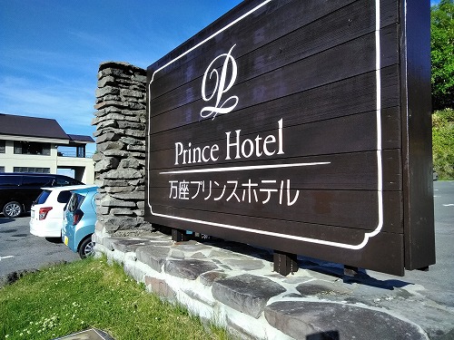 ![]() キツネに出迎えられ、万座プリンスホテルが・・・ |