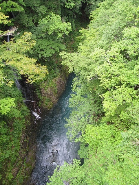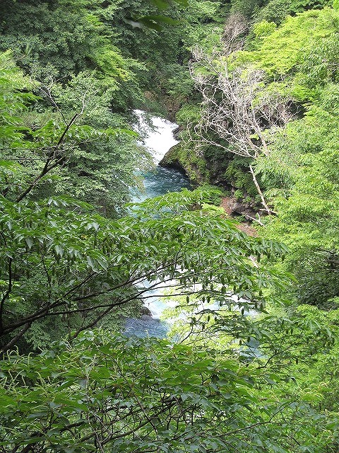 ![]() 大昔に火山が噴きだした溶岩を、川水が深く浸食してできたものと考えられています。 ![]() |