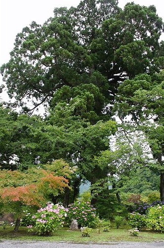 ![]() 25.5mの高さを誇る「スギ」は、県指定の名木 |