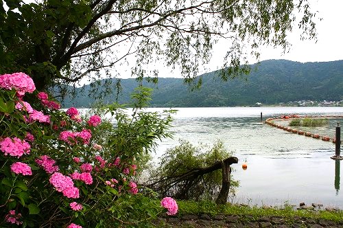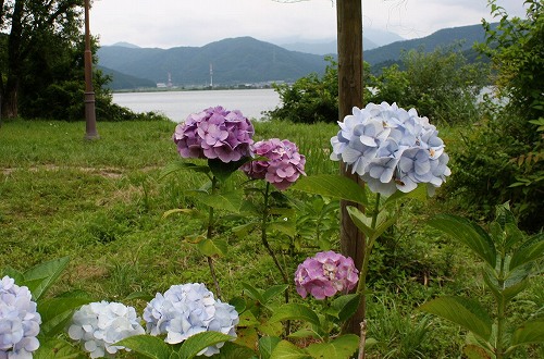 ![]() 羽衣伝説や菊石姫伝説で有名な余呉湖畔で、6月下旬にかけて約1万株の紫陽花が約600mにかけて咲き誇りますが、平日なので寂しい公園でした。 |
