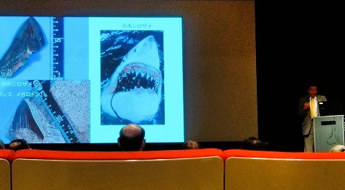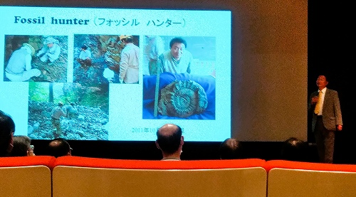 ![]() 東海化石研究会 会長 蜂矢喜一郎氏による7:00~8:00講演>~質問受け答え中に出る 師崎層群最も重要な発見は発光器の保存された深海魚の発見だそうです |