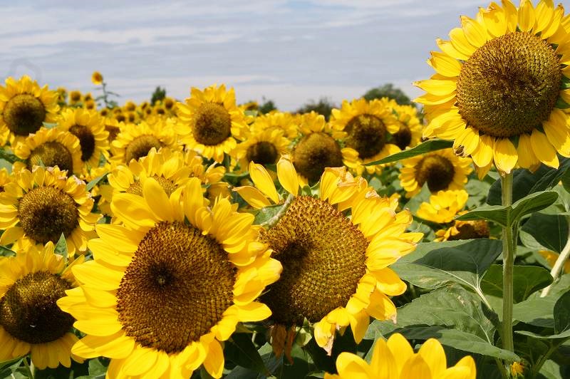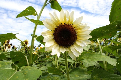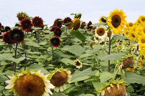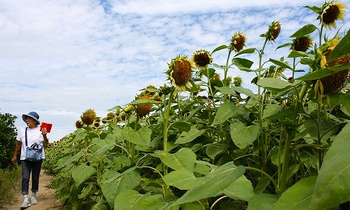 祖父江町を走っていたら見つけた 背が高すぎて離れて眺める(所々にひまわりが) 稲沢市へ新聞に載っていた『寺尾園芸』をやっと探して 白いひまわりと黒いひまわりと三色 三ケ所目は2度目の大垣のひまわり畑です 台風が近づいてきた猛暑の中