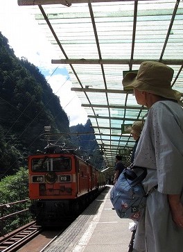 人食い岩まで行き急いで引き返す(実際の自由時間は15分ぐらい) 9:33着~発0:01欅平