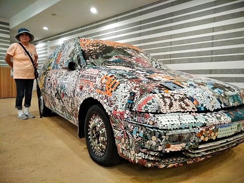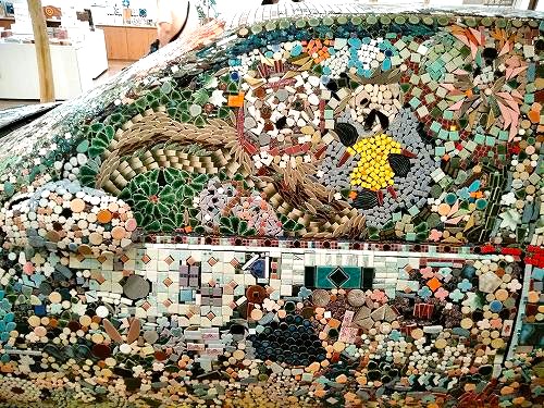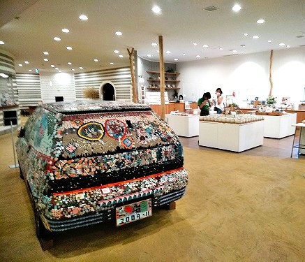 施釉磁器モザイクタイル発祥の地にして、全国一の生産量を誇る多治見市笠原町に誕生したモザイクタイルミュージアム 何か不思議な建物が? 車にモザイクタイルがデザインされていました 予約でモザイクタイルが作れます メルヘンチック感があります