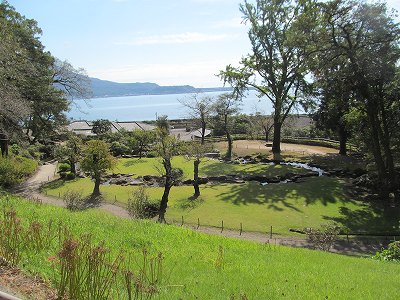 錦江湾を池に、桜島を築山に見立てた借景庭園で、島津家の別邸として1658年に建造された。