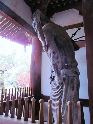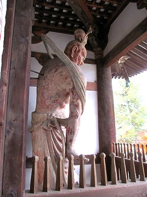 南大門の亜吽金剛力士像(国宝奈良時代で日本最古)の迫力がうかがえる作りが分かる(朱色と青色に彩色もされています)