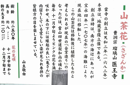 愛知県豊橋市にある 医王寺(さざんか寺)