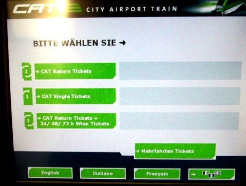 ウィーン国際空港ターンテーブル近くにチケット販売機があった。 ミッテまで買っている日本人を見つけ同行することにしました。 1人11ユーロ |