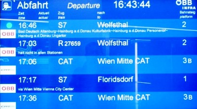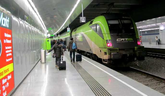 私達はCATで>16:15 ウィーン国際空港>高速鉄道CAT>ミッテ駅>タクシー>ホテル