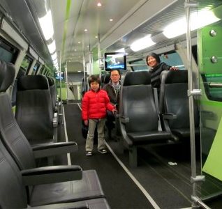 ![]() 車内は2階建てになっていたので、2階へ(荷物は他の日本人が見ていてくれました) 荷物を見てくれた人の子と、ミッテまで同行させてもらった人と記念写真。 |