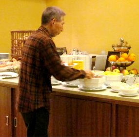![]() ![]() ![]() Am6:30 三回目の朝食も一番乗り!もう慣れたものです。主食のパンも美味しいです。 |