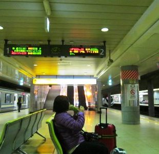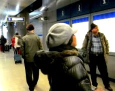 ![]() ![]() 「空港行は後6分で来るね!」 外国の人達も結構心配してみていました。 |