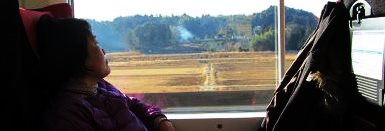 ![]() のんびり朝日を浴びて、名残惜しい車窓を楽しんで・・・ |