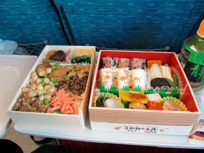 ![]() 新幹線の中で食べる駅弁を品川で買ったところ |