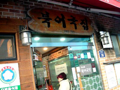 ![]() 『ブゴグッチッ』 ソウルでチョー有名な干し鱈(タラ)のスープの有名店 壁に掛かっているメニューは、干し鱈のスープ(ブゴヘジャンクッ、7,000ウォン)のみ。 1968年にオープンした老舗 |