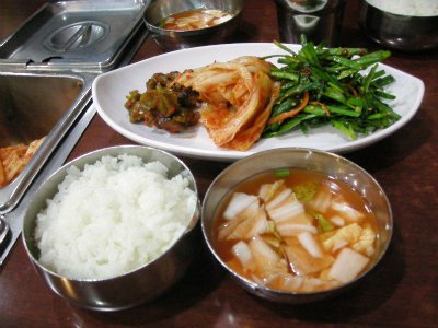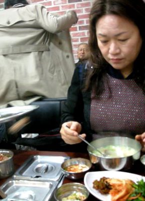 ![]() ガイドさんに進められ、着いた鱈のスープがおいしいお店は・・・なんだー! ここなら3回目ですよ! 席に着けばオーダーせずとも出てきます。まずキムチが並べられ、スープもすぐに運ばれてきます。 |