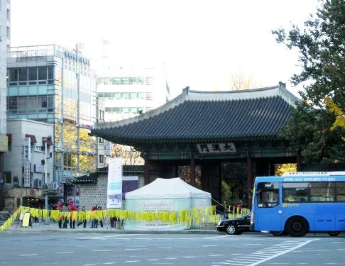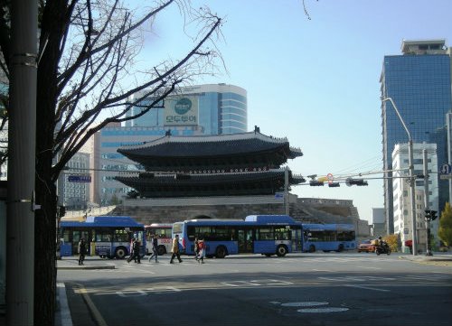 ![]() 新しく建て直した『崇礼門スンネムン』 1398年に朝鮮王朝初代王である太祖(テジョ)によって建立された |