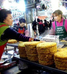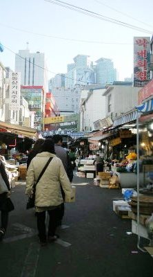 ![]() 活気ある雰囲気が最高! チジミで有名な市場で食べましたが・・少し日本の味とは違いました。 |