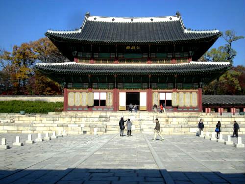 ![]() 仁政門(インジョンムン)は仁政殿(インジョンジョン)の正門 韓ドラの撮影に使われているようです 『昌徳宮チャンドックン』14世紀後半から20世紀まで続いた朝鮮王朝を現在に伝える古宮(仁政殿が正殿)。 保存状態 に優れ、美しい自然と建築との調和。 韓国の五大古宮の中で唯一ユネスコの世界文化遺産に選定。 |