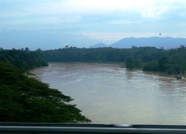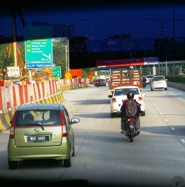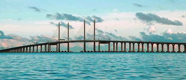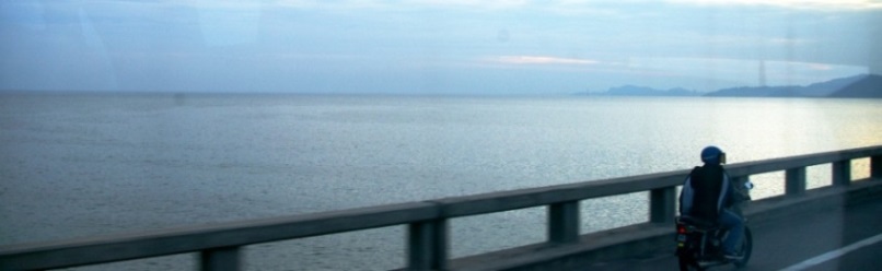 彼方に霞んで見えるペナンセカンドブリッジ24km 東南アジア最長の橋を眺めながら渡るペナンブリッジ13.5kmを渡る |