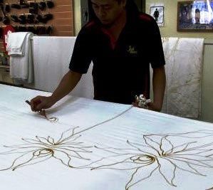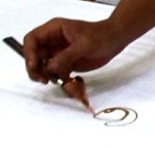 ![]() ![]() マレーシアを代表する伝統文化といえばバティック(ろうけつ染め)です。 職人さんの妙技(下絵なしで直接ロウで描く) チャンティンという器具に溶けたロウを入れて線をなぞります。手早く描かないとロウが固まってチャンティンの穴をふさぐ。 |