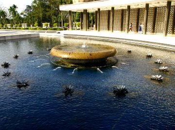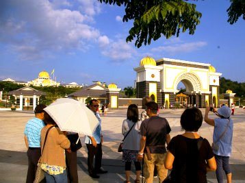 ![]() 8,000人収容の大規模な国立モスク 特徴的な礼拝堂部分の屋根は、マレーシアの13の行政区分と、 イスラム教における5行を象徴する意味で18の襞になっているとか。 |