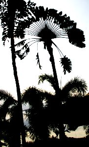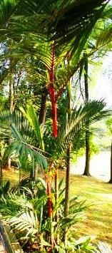 ![]() 扇のような椰子の木は『旅人ヤシ』と呼ばれている(垂れ下がった一番下の茎をもぎ取れば水が滴ってくるそうです) |