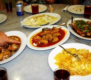 ![]() 海南鶏飯(ハイナンチーファン)は、茹で鶏とその茹で汁で炊いた白米を共に皿へ 盛り付けたマレーシアなどの一般的な料理 。 |