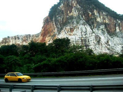 ![]() 窓の外は広大なパームヤシが続きと石切り場が目に付いた |