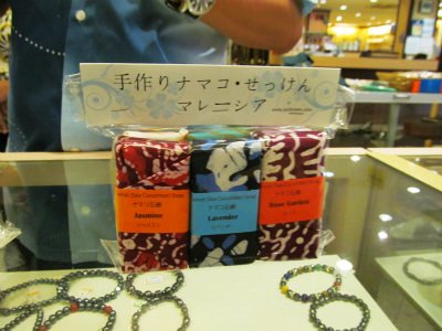 ![]() 貴金属店:色々な石のブレスレット(1本¥1000) ナマコ石鹸(保湿効果があるそうな)は誰も買いませんでした。 ネックレスを買い¥1000ネックレスが半額の¥500になったが、サービスに貰った人もいて納得がいかんがね! |