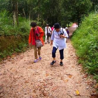 ![]() 5分で到着! ここでカートを降りて奥地へ徒歩で向かいます。 一本道をどんどん歩いて行く・・・ |