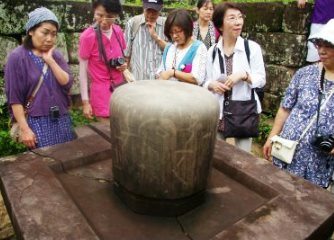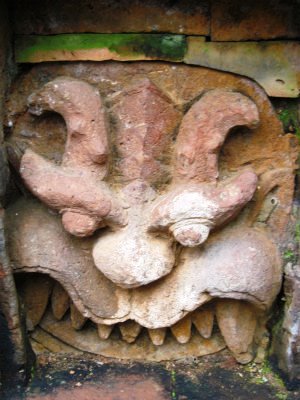 ![]() 1000年以上前の遺跡で記念写真 ↓にらみを利かす獅子の様で、侵入者を威嚇している。 |