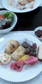 ![]() ![]() ![]() 6:30 朝食(種類も豊富で味付けも満足しました) スイカジュースがお気に入り |