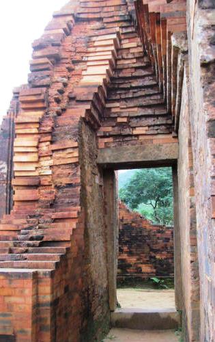 ![]() 建築技術はすごいなーぁ! 古代ヒンドゥー教のチャム族たちは、歴代王朝が代わる度に祠堂を建てていました。 レンガ造りの祠堂は、レンガの間に接着剤を一切使わず建てた建築様式で、アーチを用いず屋根を架ける構造です。 |