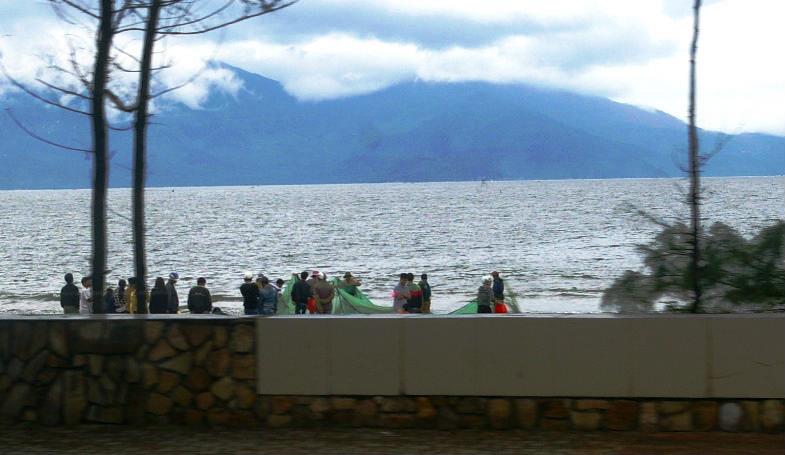![]() ビーチ沿いを走っていたら、地引網を引き上げています? |