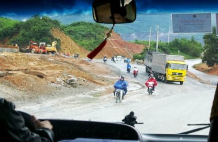 ![]() 2005年日本の協力で、東南アジア最長6.3kのハイヴァントンネルが開通。壁面の左側を日本人、右側はベトナム人(すでに亀裂) |