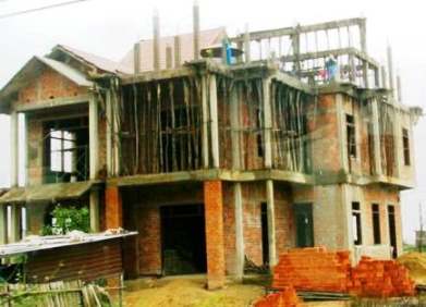 ![]() 工事中の道路があったりでバスが揺れます。 地震が無いので柱は細く筋違もありませんが、壁は全てレンガを積み上げて! |